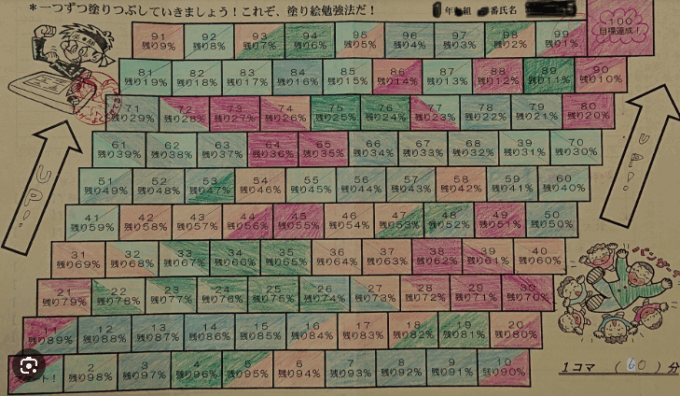 努力して学習したことが可視化できる方法です。これを用いてモチベーションアップにつなげます。